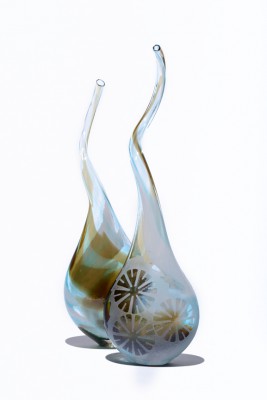 Solid-formed one-of-a-kind glass sculpture with cremains as an inclusion.